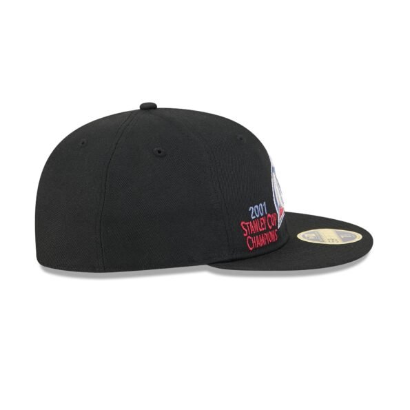 The Colorado Avalanche Championship Pack Retro Crown 59FIFTY Fitted Cap features an embroidered Avalanche logo with a 2001 Stanley Cup Champions wordmark at patch at the front panels. Additional details include a matching NHL Shield at the rear with a green undervisor.